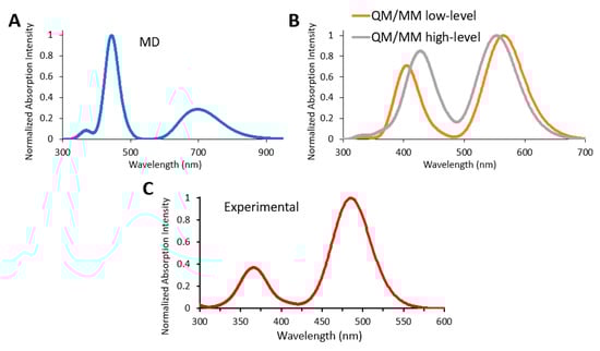 - Cailliez, F.; Müller, P.; Firmino, T.; Pernot, P.; de la Lande, A. Energetics of photoinduced charge migration within the tryptophan tetrad of an animal (6–4) photolyase. J. Am. Chem. Soc. 2016, 138, 1904–1915. [Google Scholar] [CrossRef] [PubMed]