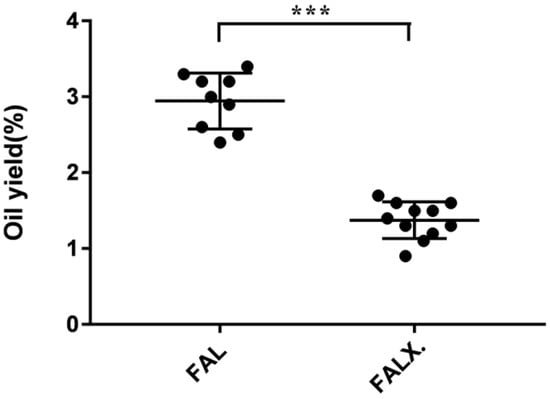 Oil yields of 20 batches of FA from two species. Data were presented as mean ± SEM. *** p < 0.001, compared with Amomum villosum Lour. var. xanthioides T. L. Wu et Senjen (FALX.).