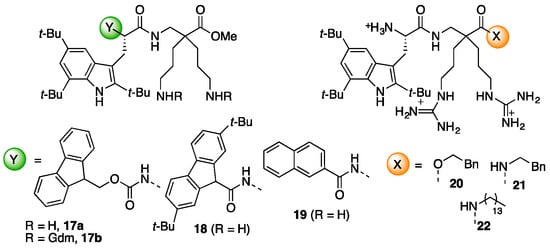 4.3.13. Synthesis of Tbt-β2,2 h bis-Arg-NH(CH2)13CH3 22 (Scheme 16)