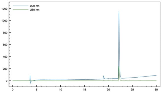 +; HPLC (Water/ACN (0.1% TFA); 5% to 100% ACN in 30 min: tr = 21.9 min (