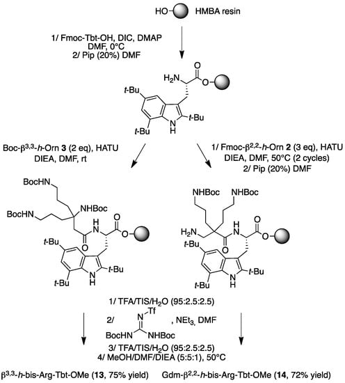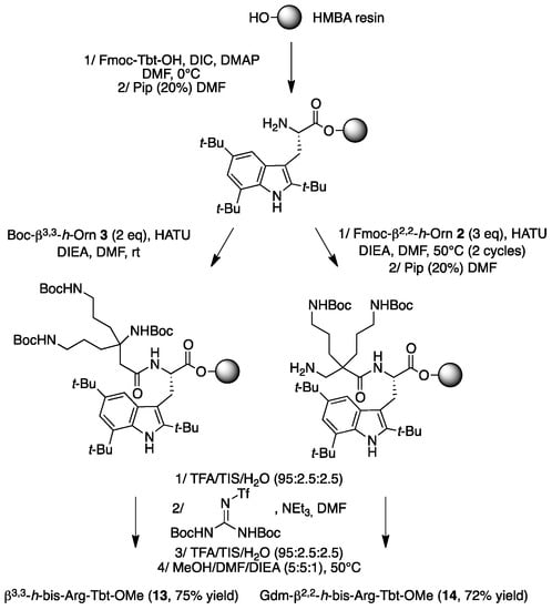 Synthesis of Trp-β2,2 hbis-Orn-OMe 8 and Gdm-Trp-β2,2 hbis-Arg-OMe 10