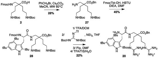 4.3.11. Synthesis of Tbt-β2,2 h bis-Arg-OBn 20 (Scheme 14)