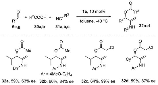 - Wang, S.-X.; Wang, M.-X.; Wang, D.-X.; Zhu, J. Catalytic Enantioselective Passerini Three-Component Reaction. Angew. Chem. Int. Ed. 2008, 47, 388–391. [Google Scholar] [CrossRef] [PubMed]