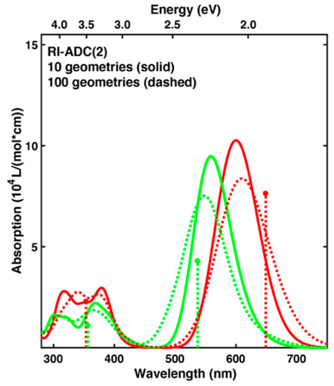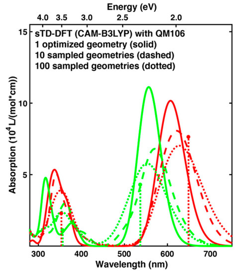 - Zuehlsdorff, T.J.; Isborn, C.M. Modeling absorption spectra of molecules in solution. Int. J. Quantum Chem. 2019, 119, e25719. [Google Scholar] [CrossRef]