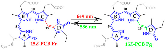 - Rockwell, N.C.; Ohlendorf, R.; Möglich, A. Cyanobacteriochromes in full color and three dimensions. Proc. Natl. Acad. Sci. USA 2013, 110, 806–807. [Google Scholar] [CrossRef]