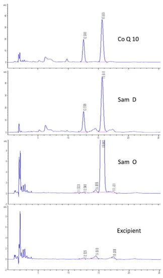 - Tripodi, V.; Flor, S.; Contin, M.; Mario, C.; Silvia, L. Simple, highly sensitive micro HPLC method for the determination of coenzyme Q10 and its major related substances. J. Liq. Chrom. Rel. Tech®. 2009, 32, 860–873. [Google Scholar] [CrossRef]