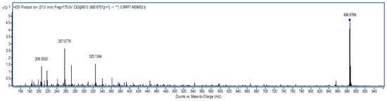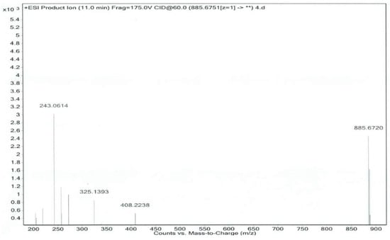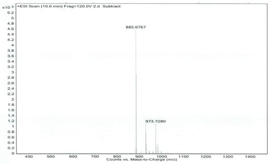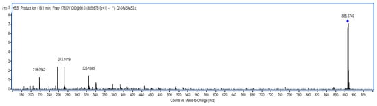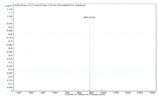 Separation was achieved by using a Kromasil C18 column (250 × 4.6 mm, 5 μm). The column temperature was kept at 35 °C. The isocratic mobile phase consisted of methanol–ethanol (50:50), the flow rate was set at 2.0 mL/min, and the split ratio was 3:1. Electrospray ionization (ESI) source was performed at a positive ion pattern. Capillary voltage was set at 4000 V, the nebulizer pressure was 45 psig and the flow rate of dry gas was at 12 L/min [,,].