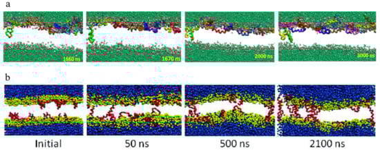 - Illya, G.; Deserno, M. Coarse-Grained Simulation Studies of Peptide-Induced Pore Formation. Biophys. J. 2008, 95, 4163–4173. [Google Scholar] [CrossRef]