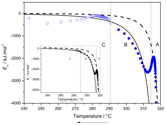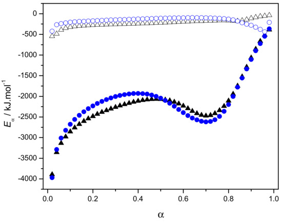 - Vyazovkin, S. Modification of the integral isoconversional method to account for variation in the activation energy. J. Comput. Chem. 2001, 22, 178–183. [Google Scholar] [CrossRef]