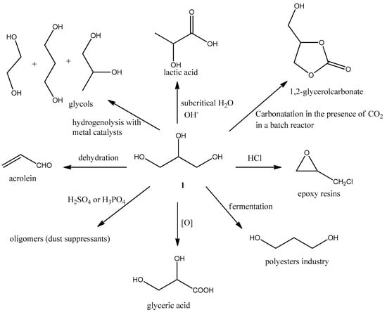 - Pagliaro, M.; Ciriminna, R.; Kimura, H.; Rossi, M.; Della Pina, C. From glycerol to value-added products. Angew. Chem. Int. Ed. 2007, 11, 4434–4440. [Google Scholar] [CrossRef]