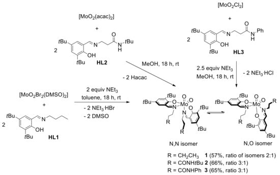 2.2. Synthesis of Dioxidomolybdenum(VI) Complexes