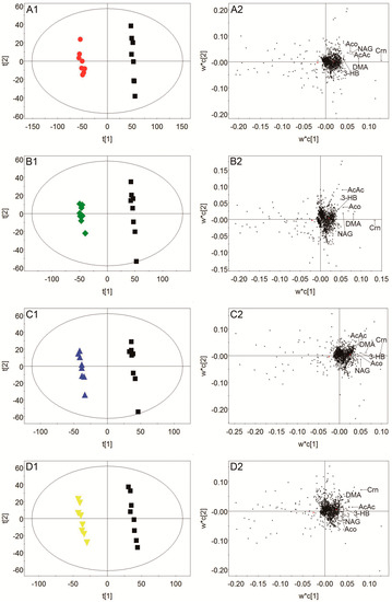 Both PCA and PLS-DA were performed with the Simca-P+ 12.0 software (Umetrics, Sweden). PCA was applied to visualize general clustering among all the groups, and then PLS-DA was applied to enlarge the difference between groups. In addition, one-way analysis of variance was used to the discriminatory variables screened out by PLS-DA, and a P value of less than 0.05 was considered to be statistically significant.