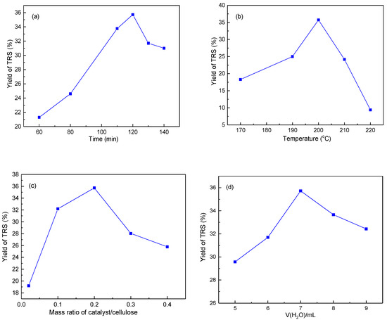 2.2.2. Effect of Reaction Conditions on Cellulose Hydrolysis over Mt-IL