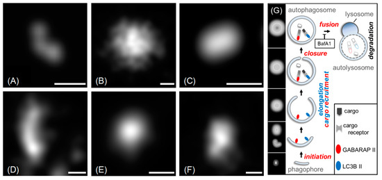 - Weidberg, H.; Shvets, E.; Shpilka, T.; Shimron, F.; Shinder, V.; Elazar, Z. LC3 and GATE-16/GABARAP subfamilies are both essential yet act differently in autophagosome biogenesis. EMBO J. 2010, 29, 1792–1802. [Google Scholar] [CrossRef]