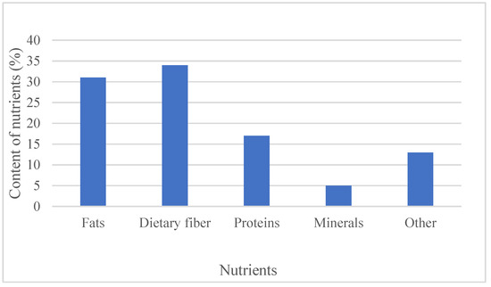 The fiber content in chia seeds is also very high. Chia seeds contain between 34 g and 40 g of dietary fiber per 100 g [3,6]. In this specific amount, the insoluble fraction (IDF) represents approximately 85–93%, while the soluble fraction (SDF) represents between 7% and 15% [19] (Table 4). Reyes-Caudillo et al. [13] showed in their research that a high amount of fiber decreases the risk of coronary heart disease, risk for diabetes type 2, and several types of cancer, and a high amount of dietary fiber in daily meals decreases subsequent hunger.