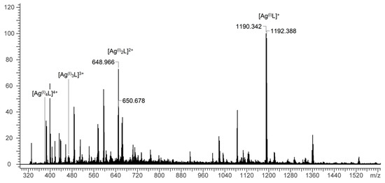 The ESI-mass spectrum of the complexes obtained by mixing the acetonitrile solutions of L with AgNO3.