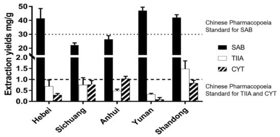 2.3. Extraction Effect of NaDES for SM from Different Geographic Origins