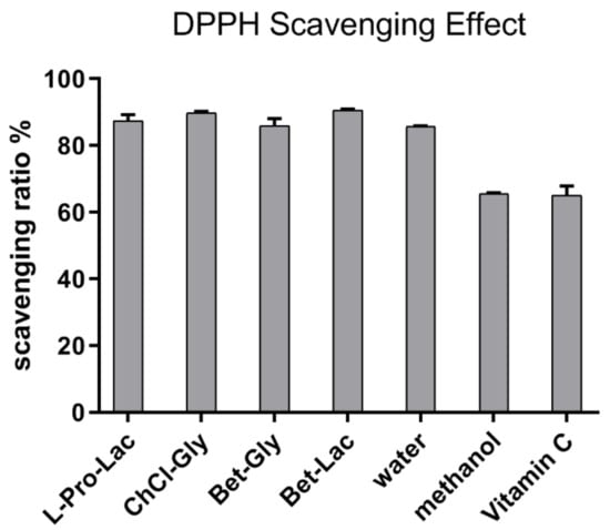 2.4. DPPH Radical Scavenging Activities of NaDES Extracts