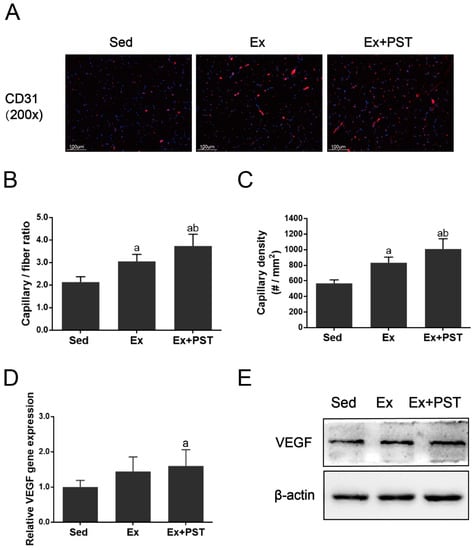 2.3. PST Enhances Muscular Angiogenesis in Exercise Training Rats
