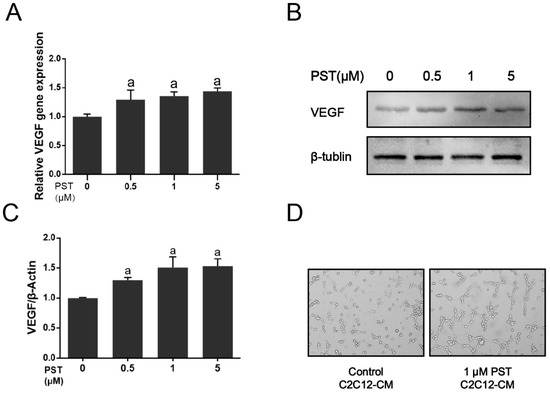 2.5. PST Increases VEGF Production in C2C12 Myotubes