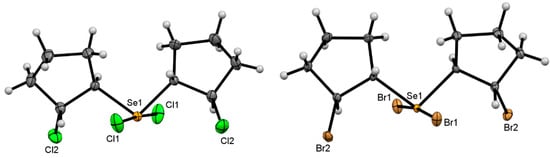- Potapov, V.A.; Amosova, S.V.; Abramova, E.V.; Musalov, M.V.; Lyssenko, K.A.; Finn, M.G. 2,6-Dihalo-9-selenabicyclo[3.3.1]nonanes and their complexes with selenium dihalides: Synthesis and structural characterization. New J. Chem. 2015, 39, 8055–8059. [Google Scholar] [CrossRef]