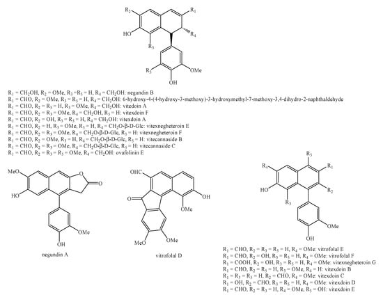 - Lou, Z.-H.; Li, H.-M.; Gao, L.-H.; Li, R.-T. Antioxidant Lignans from the Seeds of Vitex negundo var. cannabifolia. J. Asian Nat. Prod. Res. 2014, 16, 963–969. [Google Scholar] [CrossRef]