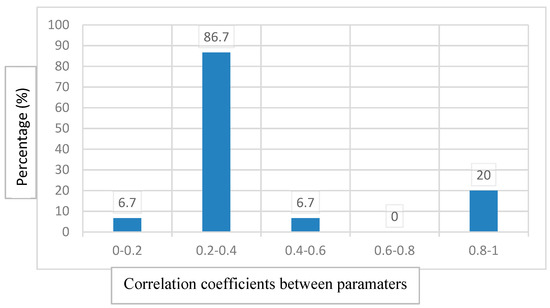 Percentage of correlation coefficients between paramaters.
