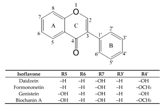 - Křížová, L.; Dadáková, K.; Kašparovská, J.; Kašparovský, T. Isoflavones. Molecules 2019, 24, 1076. [Google Scholar] [CrossRef]