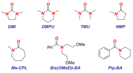 - Bisz, E.; Podchorodecka, P.; Szostak, M. N-Methylcaprolactam as a Dipolar Aprotic Solvent for Iron-Catalyzed Cross-Coupling Reactions: Matching Efficiency with Safer Reaction Media. ChemCatChem 2019, 11, 1196–1199. [Google Scholar] [CrossRef]