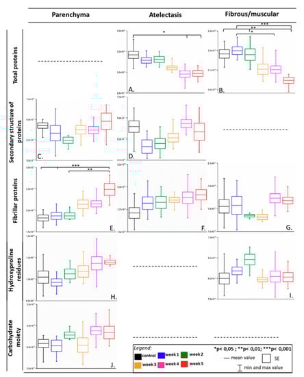 2.3. A Semi-Quantitative FTIR Approach in an Analysis of Proteins in the Lung Tissue Structures