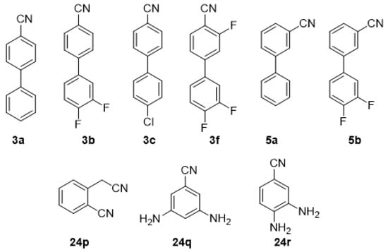 ortho-substituted benzonitriles such as 2-hydroxybenzonitrile, 2-nitrobenzonitrile, 2-aminobenzonitrile and 2-methylbenzonitrile.