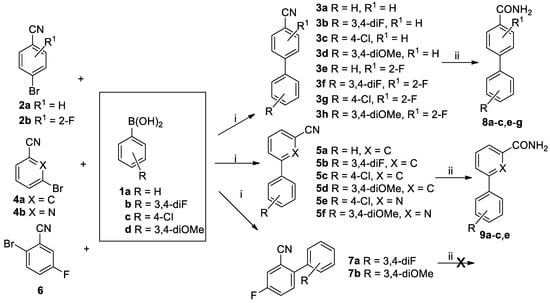 3a–h. 3-Bromobenzonitrile