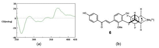 (a) ICD spectrum of the Mo-complex of 6; (b) Determination of the absolute configuration at C-2″ of 6 by the application of Snatzke’s method.
