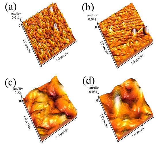 Figure 3. Atomic force microscopy (AFM) images of the reference membrane surface (a), S1 (b), S2 (c), and S3 (d).