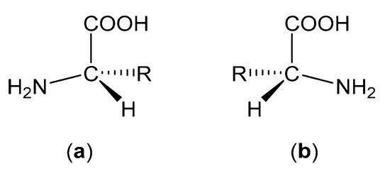 (a) Structure of an l-amino acid. (b) Structure of a d-amino acid.