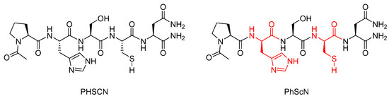 Structures of PHSCN and PhScN peptides, with the d-amino acids highlighted in red [59].