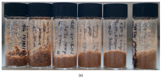 As for the methanesulfonate pulps (Figure 1c), the hydrogen sulfate pulps consisted of fine particles, with the particle size decreasing with the increasing water content. The colour of the pulps were brown, similar to the colour of the A15-A40 pulps. The H pulps were the smallest in volume.