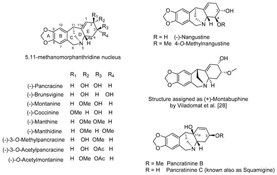 Koutová, D.; Maafi, N.; Havelek, R.; Opletal, L.; Blunden, G.; Řezáčová, M.; Cahlíková, L. Chemical and Biological Aspects of Montanine-Type Alkaloids Isolated from Plants of the Amaryllidaceae Family. Molecules 2020, 25, 2337. https://doi.org/10.3390/molecules25102337