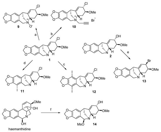 - Viladomat, F.; Bastida, J.; Codina, C.; Campbell, W.E.; Mathee, S. Alkaloids from Boophane flava. Phytochemistry 1995, 40, 307–311. [Google Scholar] [CrossRef]