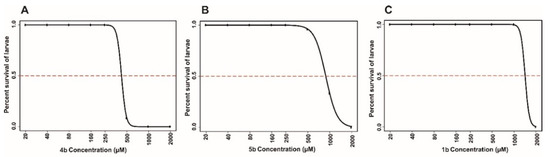 4.5.3. Determination of half Maximal Lethal Concentration 50 (LC50)