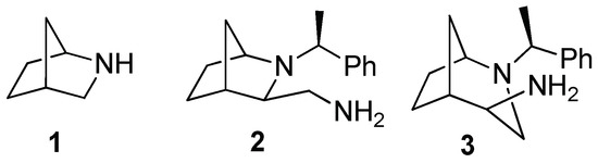 - Wojaczyńska, E.; Wojaczyński, J.; Kleniewska, K.; Dorsz, M.; Olszewski, T.K. 2-Azanorbornane—A versatile chiral aza-Diels–Alder cycloadduct: Preparation, applications in stereoselective synthesis and biological activity. Org. Biomol. Chem. 2015, 13, 6116–6148. [Google Scholar] [CrossRef] [PubMed]