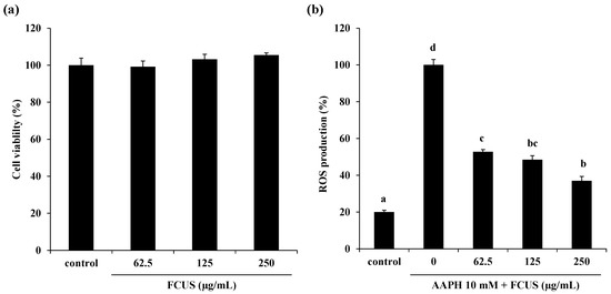 2.2. Effect of FCUS on Intracellular ROS Generation in AAPH-Stimulated Vero Cells