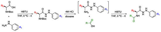 Previously established methods were employed to synthesise the substituted amino acid hydrazides starting from N-Boc amino acids and the corresponding hydrazide (Scheme 1).