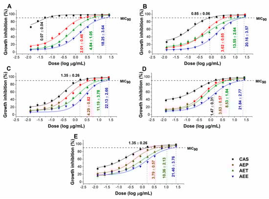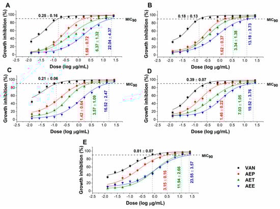 4.7. Determination of Minimum Inhibitory Concentration (MIC90)