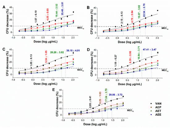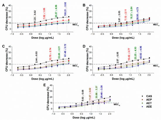 4.8. Determination of Minimum Effective Concentration (MEC10)