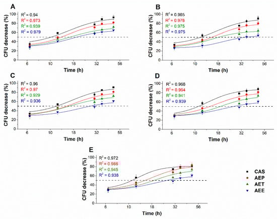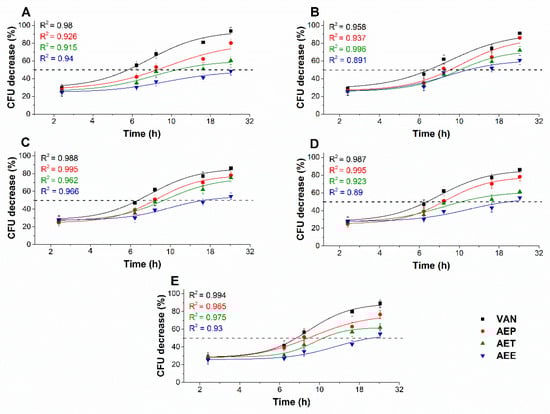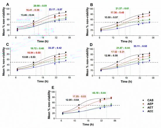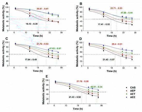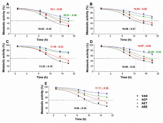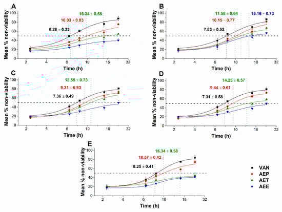4.10. Microbial Cytotoxicity and Viability Kinetic Assays of Planktonics