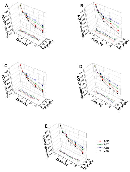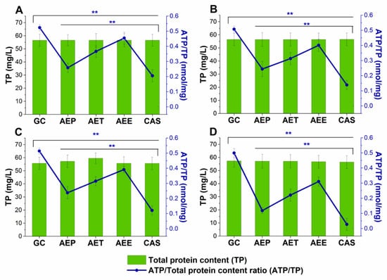 2.8.2. Variations in the Intracellular ATP to Total Protein Content Ratios