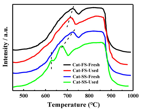 H2-TPR results of fresh and used Cat-FS and Cat-SS.