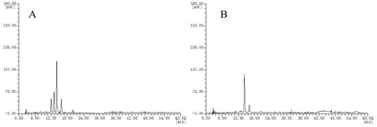 Figure 4. HPLC chromatograms of the cranberry extracts, (A), chromatogram type of E1 sample; (B) chromatogram type of E2 sample.