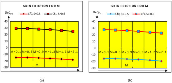 Shear stresses against (a) S =0.5 and (b) S = 0.5.